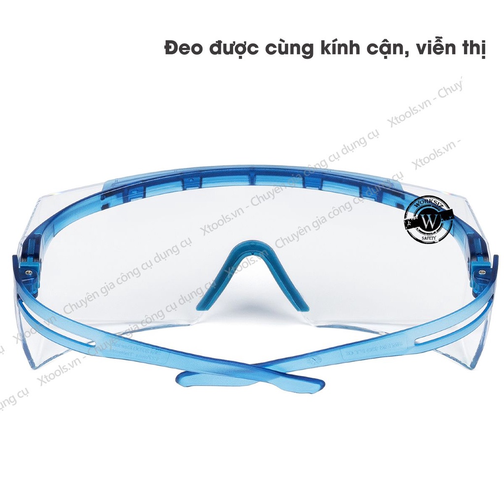 Kính bảo hộ 3M SF3701ASGAF-BLU kính Super OTG đeo ngoài kính cận, chống trượt, chống hơi nước, trầy xước, chống tia UV