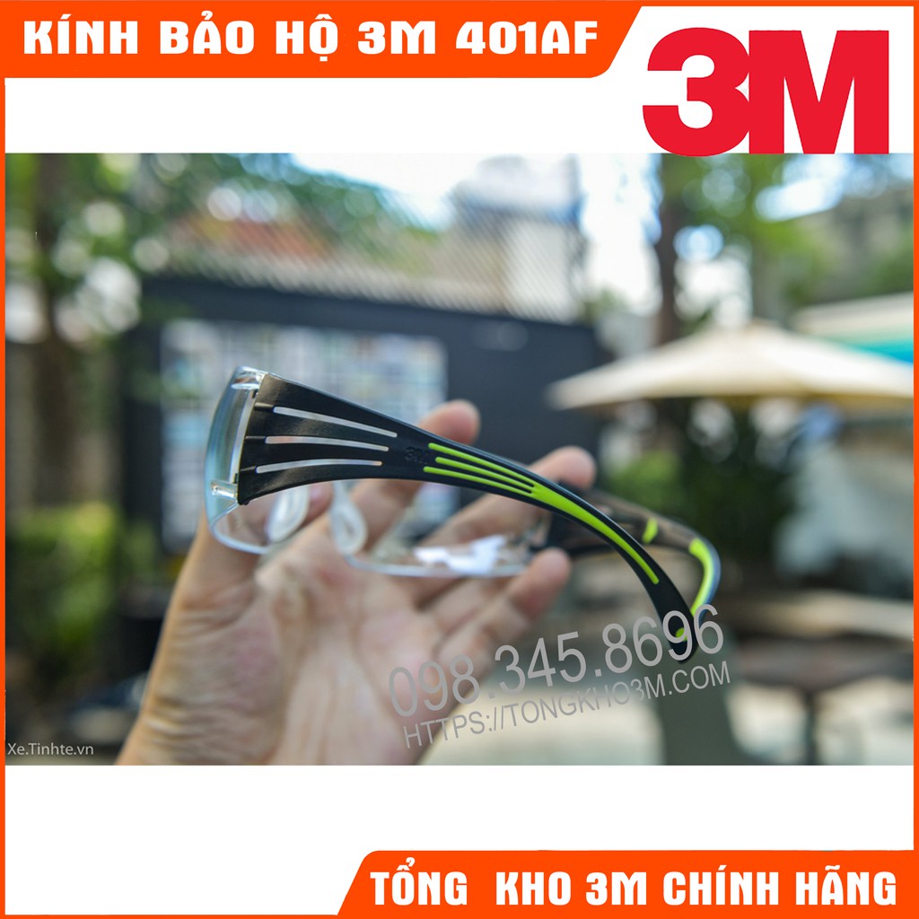 - Kính bảo hộ lao động 3M SF401AF màu trắng trong suốt có tác dụng bảo vệ mắt khỏi các bụi bẩn, các tia UV gây hại từ ánh sáng mặt trời.