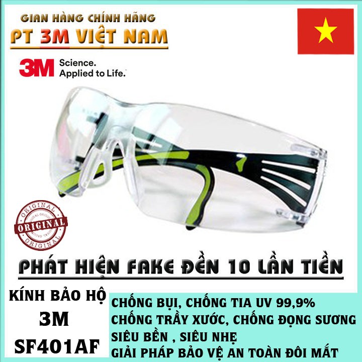 Kính bảo hộ 3M SF401AF kính chống bụi chống tia UV hạn chế đọng sương, bảo vệ mắt (màu trắng)