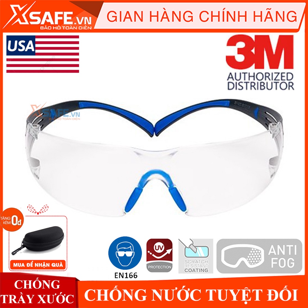 Kính bảo hộ 3M SF401SGAF kính chống bụi, chống hơi nước trầy xước vượt trội, ngăn chặn tia UV, mắt kính lao động, xe máy