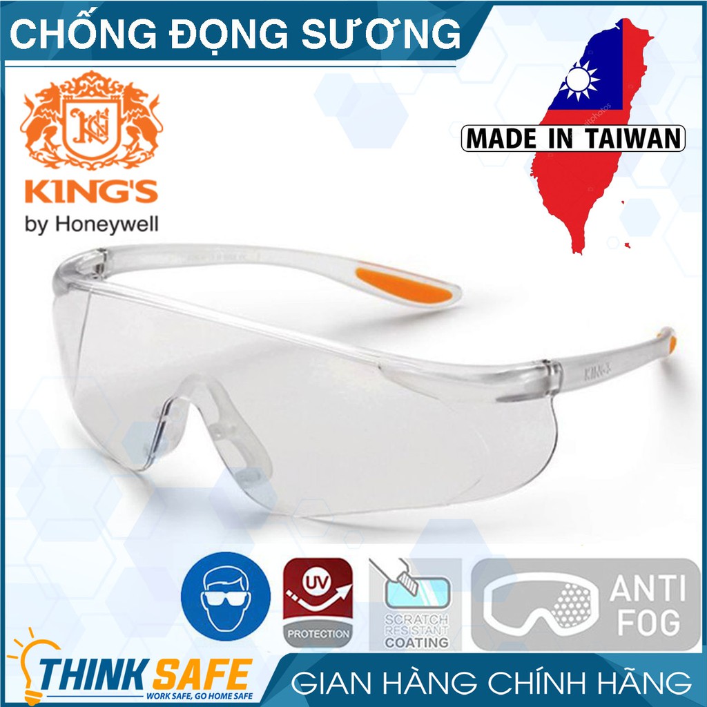 Kính bảo hộ che mặt Kings Thinksafe, bảo vệ mắt đi đường, lao động, chống tia UV, chống bụi chính hãng KY1151 trong suốt