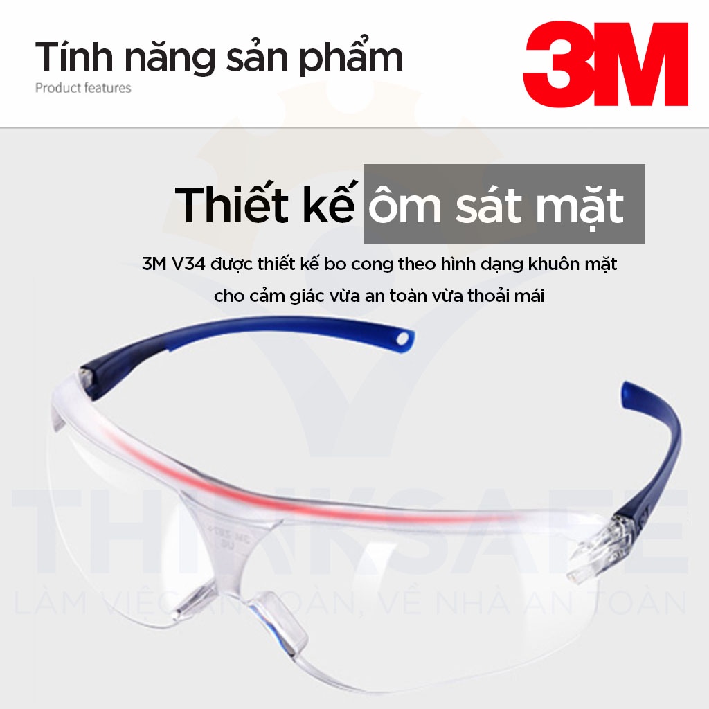 Kính bảo hộ chính hãng 3M V34, chống tia UV, chống bụi, chắn gió, chống đọng sương, màu trong suốt, bảo vệ mắt Thinksafe✨ Kính 3M V34 là một sản phẩm chất lượng chống bụi bẩn, chống tia cực tím hiệu quả, khả năng chống đọng sương tuyệt đối khi người lao động sử dụng trong thời gian dài.