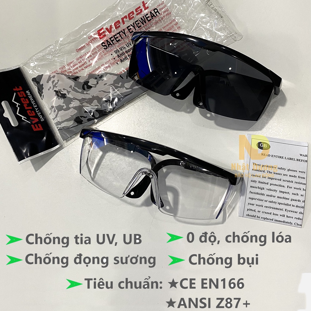 Nhà cửa & Đời sống > Dụng cụ & Thiết bị tiện ích > Găng tay, kính bảo hộ & mặt nạ || Kính bảo hộ chống bụi chống tia UV Everest EV105B, kính đi đường, kính râm bảo vệ mắtCòn hàng