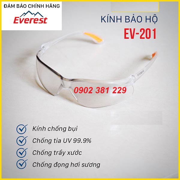 Giới thiệu Kính bảo hộ chống bụi và tia UV Everest 201 - màu trắng