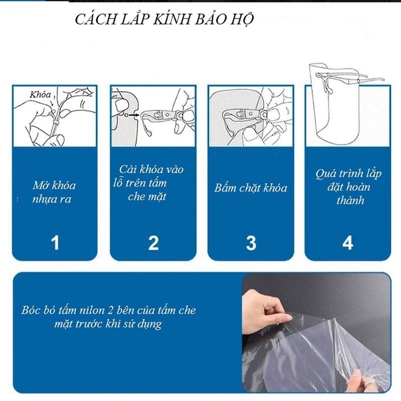 - Tấm kính chắc chắn; thiết kế màng che vừa bao trọn khuôn mặt để bảo vệ được bạn tốt nhất