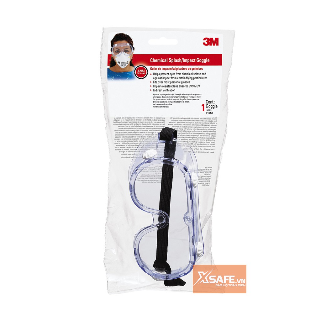 Kính chống hóa chất 3M Safety Splash Goggle 334AF là 1 trong những sản phẩm thuộc ngành bảo hộ lao động được 3M sản xuất và bán trên thị trường Việt Nam. Tròng kính được làm bằng chất liệu polycarbonat, trọng lượng nhẹ, Phù hợp với tất cả người sử dụng. Hệ thống thoát khí gián tiếp được thiết kế để lưu thông khí và giảm thiểu đọng sương, dây chun đeo qua đầu đàn hồi giúp kính ôm khít mắt. Kính đạt tiêu chuẩn của ANSI Z87.1-2010. có khả năng chống tia UV đến 99.9%.