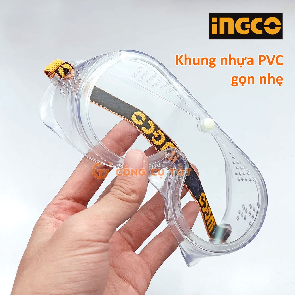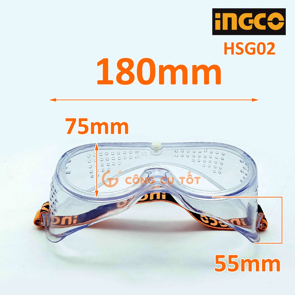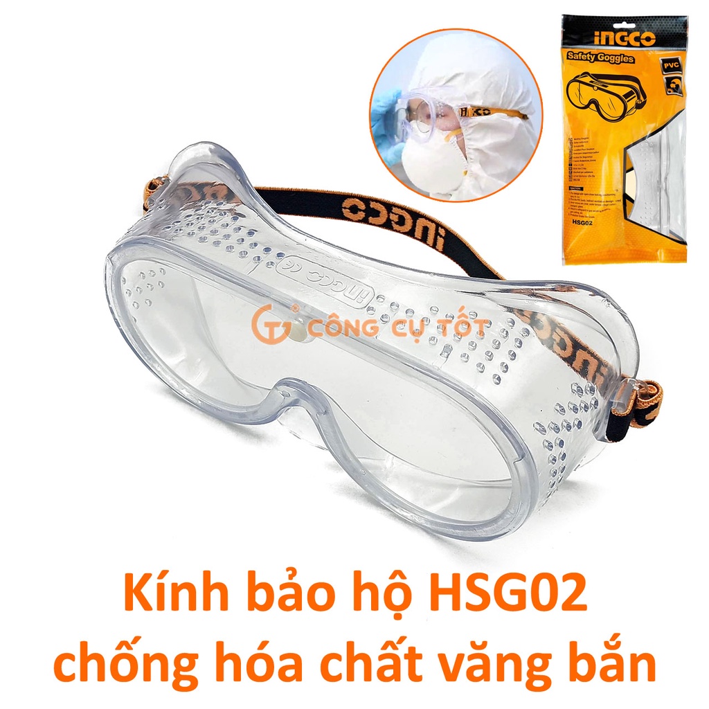 Kính bảo hộ chống hóa chất văng bắn Ingco HSG02 có thiết kế kín mắt, gọn nhẹ, có độ trong suốt cao.Thiết kế: Đeo kín mắt.