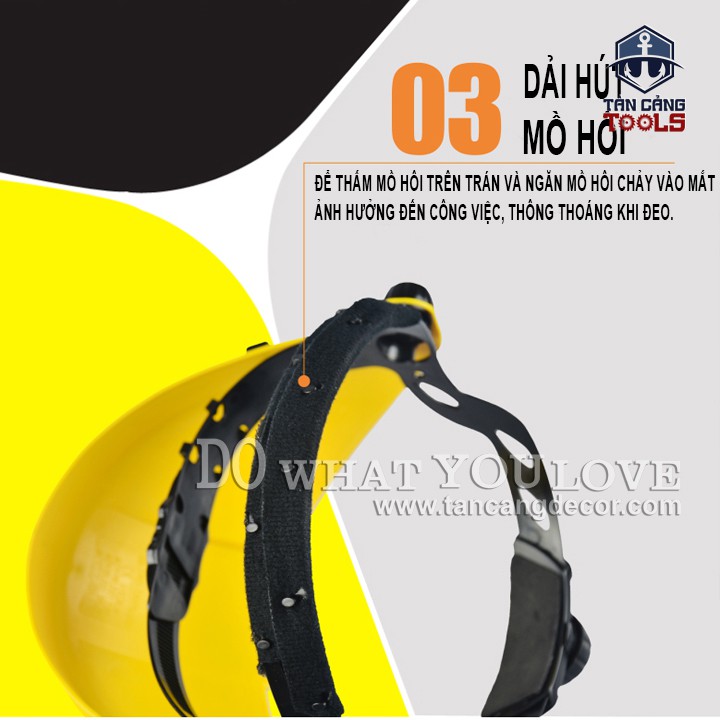 - Đế được trang bị mút chống mồ hôi trên trán ngăn chảy mồ hôi vào mắt trong quá trình làm việc