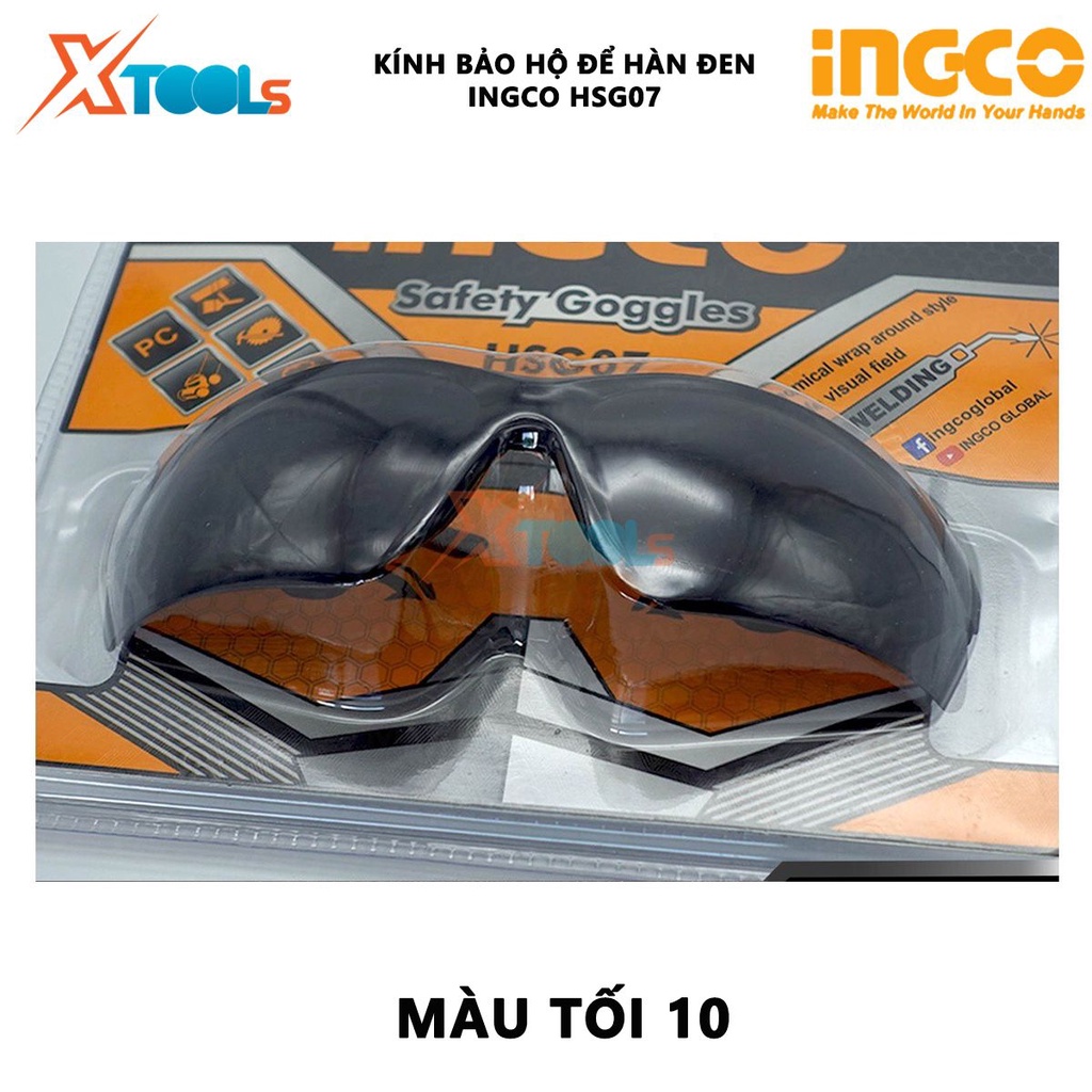Nhà cửa & Đời sống > Dụng cụ & Thiết bị tiện ích > Dụng cụ > Dụng cụ hàn điện || Kính bảo hộ dùng để hàn INGCO HSG07 | Kính bảo hộ an toàn Chất liệu PC Màu tối 10 Trọng lượng nhẹ, thoải mái khi đeo, tầCòn hàng