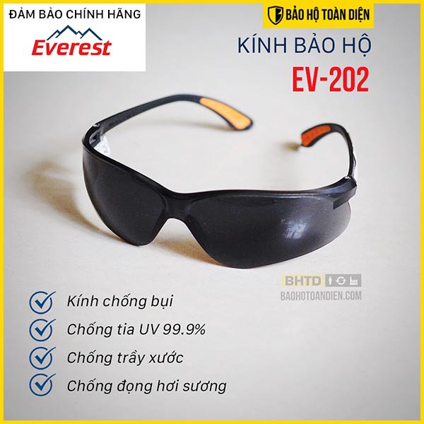 Kính bảo hộ Everest EV202. Kính bảo hộ tròng đen chạy xe chống chói, chống bụi, cản gió. Chính hãng nhập khẩu