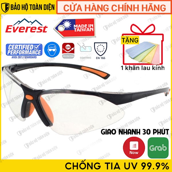 Kính bảo hộ Everest EV301 Đài Loan trong suốt, chống bụi, chống tia UV [TẶNG KHĂN LAU KÍNH]