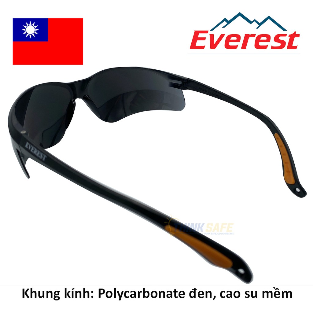 Kính bảo hộ lao động Everest Thinksafe, mắt kính chống bụi đi đường, chống tia UV, bảo vệ mắt đa năng - EV202 màu đen