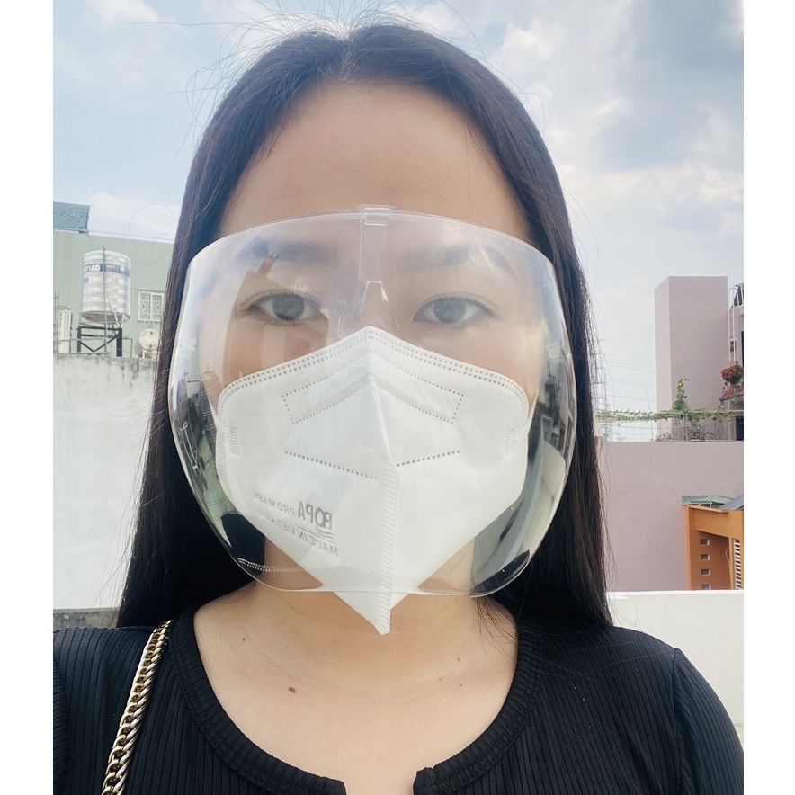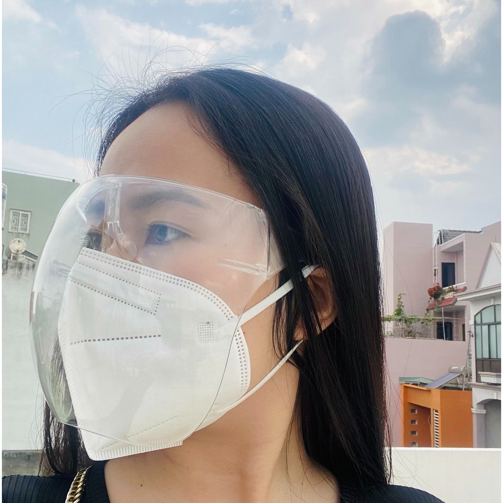 - Kính có thể tháo màn kính ra khi không cần dùng đến, màn chắn nhựa phủ hết khuôn mặt, bảo vệ toàn bộ khuôn mặt.