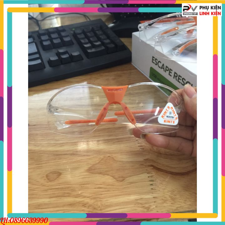 - Sản phẩm có độ trong suốt cao, chuẩn ko bị vênh, chao nhựa, giúp mắt nhìn trong suốt. Kính bảo hộ Kint’s có kiểu dáng đẹp bo tròn theo khuôn mắt giúp che chắn gió, kín bụi.
