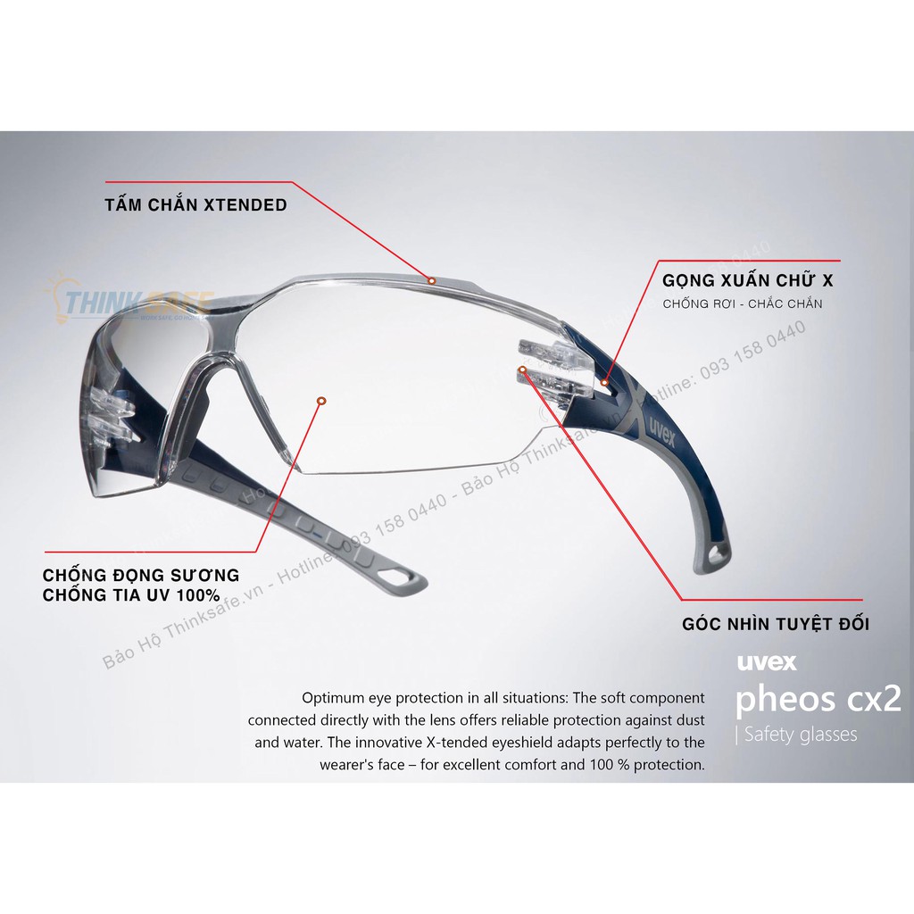 Kính bảo hộ lao động cao cấp Uvex pheo CX2 bảo vệ đa năng, chống vỡ, chống bụi đi đường, chống tia bắn giọt bắn.✨ Trong môi trường lao động có rất nhiều tác động gây mỏi mắt, nhức mắt, gây tổn thương cho mắt như bụi, hơi khí độc, các mảnh vụn văng bắn, các tia bức xạ, nguồn ánh sáng mạnh, hay các chất lỏng, hóa chất văng bắn.