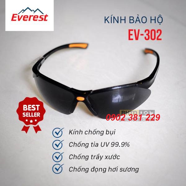 Kính Bảo Hộ Lao Động Chống Bụi Và Tia UV Everest EV302 (Màu đen)Tròng kính màu Đen