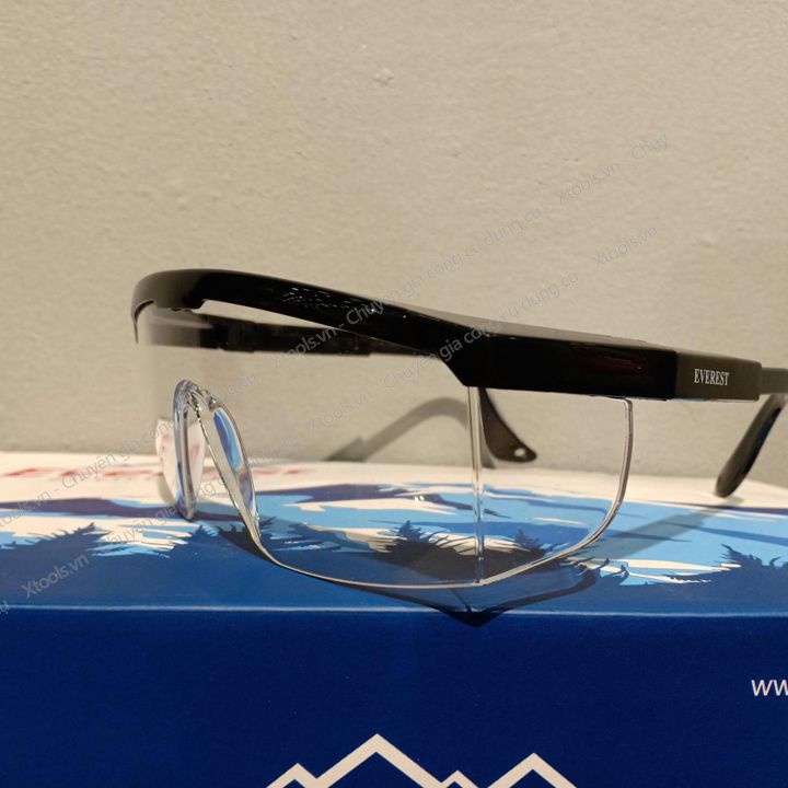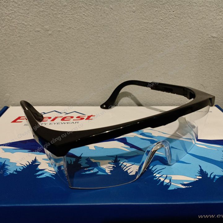 Giới thiệu Kính bảo hộ lao động Everest EV105 đen - trắng - Mắt kính chống bụi, đọng hơi nước, chống trầy xước, chống tia UV