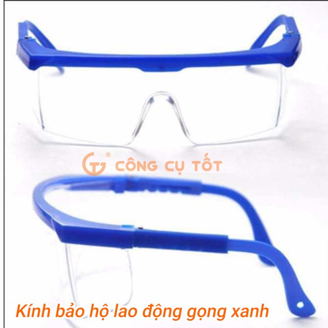 Kính bảo hộ lao động gọng xanh gọng kính nhựa PC