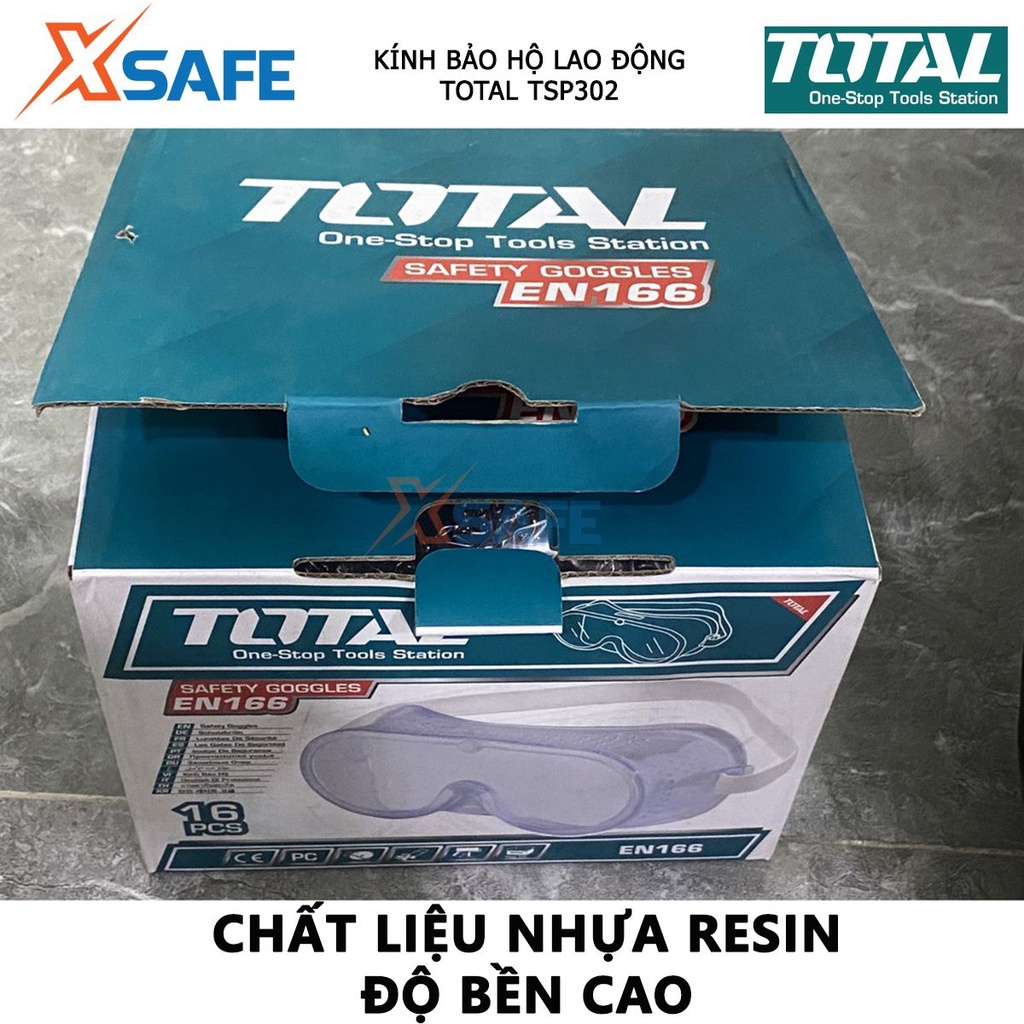 Giới thiệu Kính bảo hộ lao động TOTAL TSP302 kính nhựa dẻo chống bụi Màu tròng kính trong suốt, khung nhựa PVC mềm và nhẹ