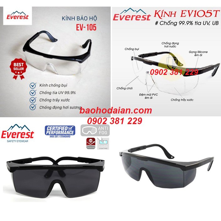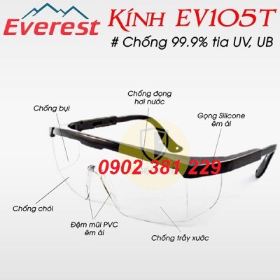 Giới thiệu Kính bảo hộ mắt chống bụi, chống UV Everest EV105