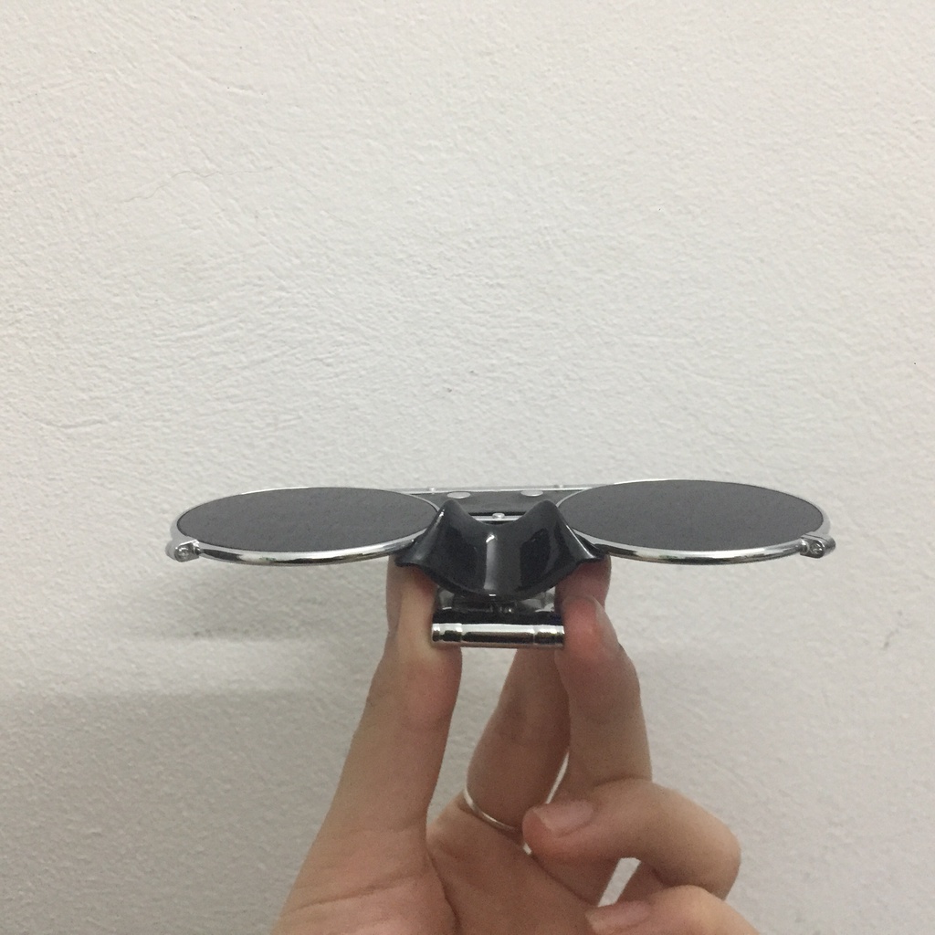 Mắt kính có tròng đen, chống lóa khi có ánh sáng chói.