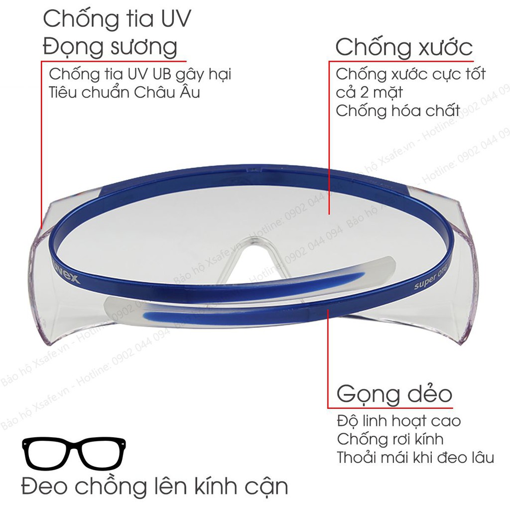 Giới thiệu Kính bảo hộ super OTG Uvex 9169065 Mắt kính đeo ngoài kính cận, chống trượt, chống chói, hơi sương, chống trầy xước
