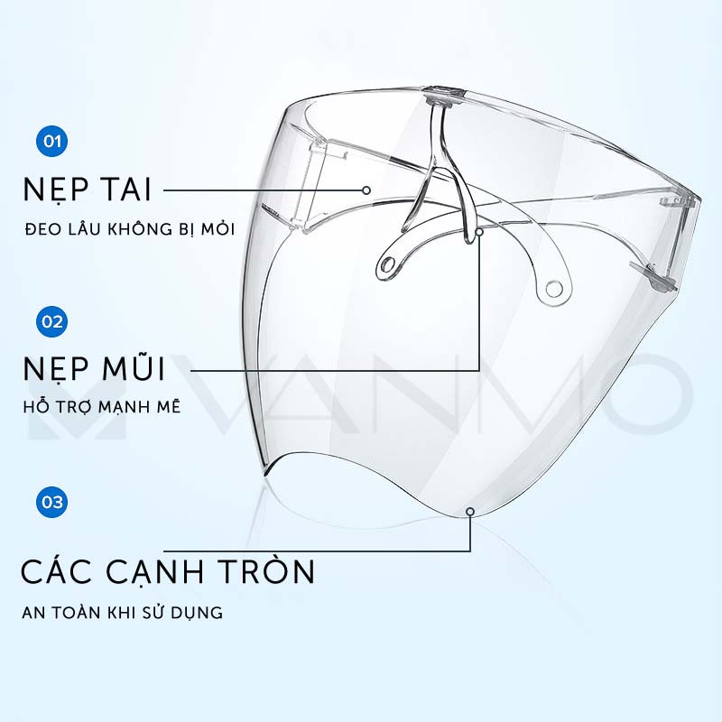 - Mặt nạ trong suốt độ phân giải cao, chống sương mù, chống bắn nước bọt màng bảo vệ
