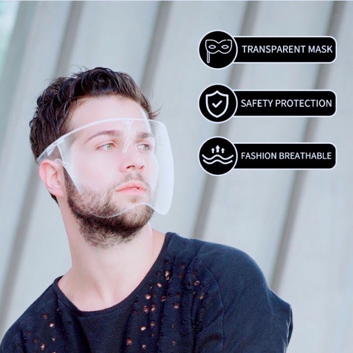 - Kính có thể tháo màn kính ra khi không cần dùng đến, màn chắn nhựa phủ hết khuôn mặt, bảo vệ toàn bộ khuôn mặt.