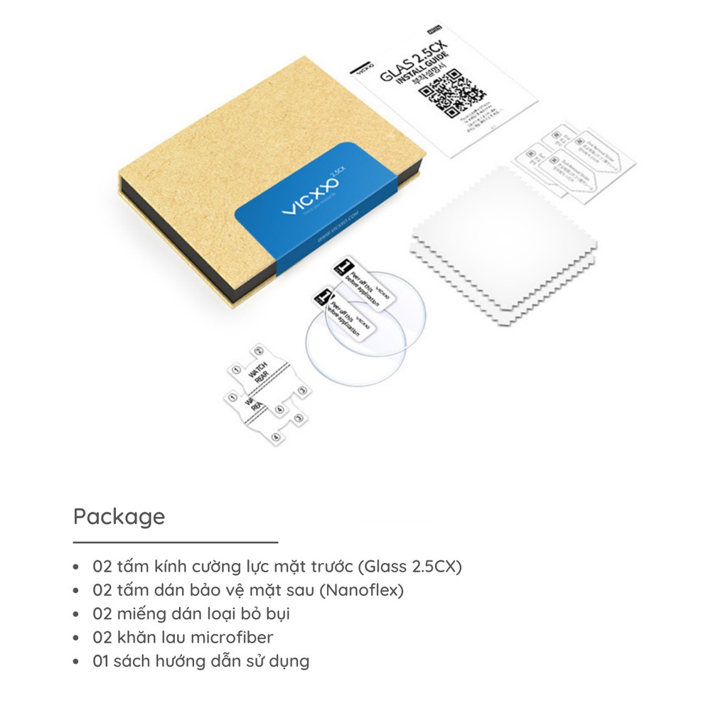 ✓ Một bộ gồm 02 tấm kính mặt trước + 02 tấm film dán mặt sau. Cho bạn thời gian sử dụng dài hơn và thay thế khi cần thiết.
