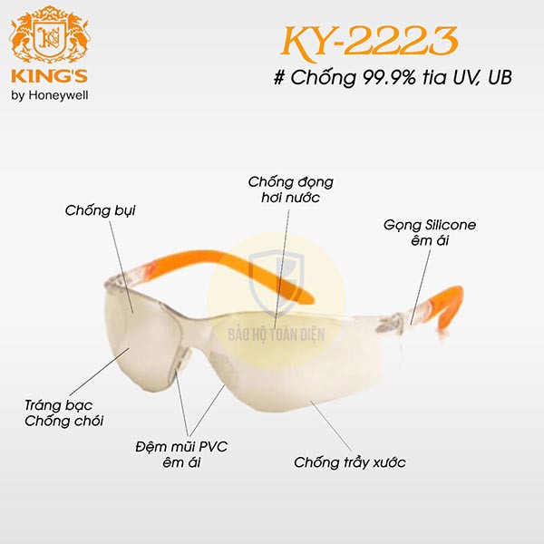 Giới thiệu Kính chống bụi King KY 2223, màu trắng tráng bạc, dùng khi chạy xe, làm việc,... bảo vệ mắt hiệu quả