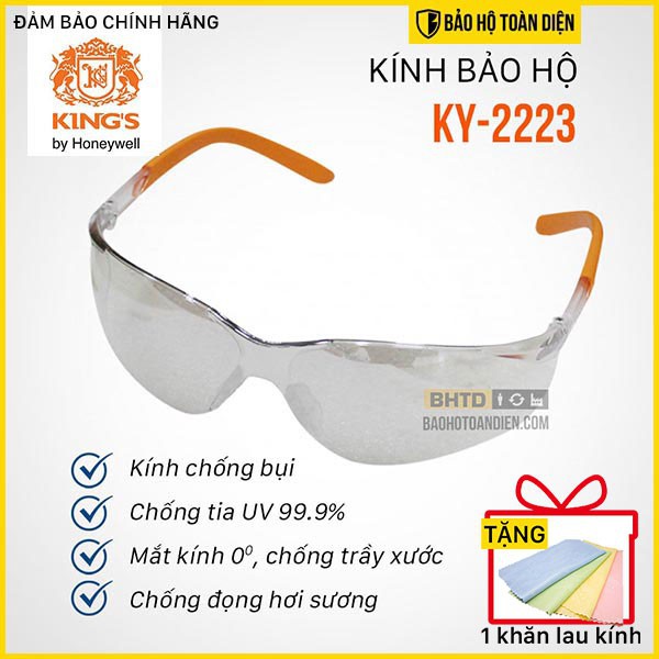 Kính chống bụi King KY 2223, màu trắng tráng bạc, dùng khi chạy xe, làm việc,... bảo vệ mắt hiệu quả
