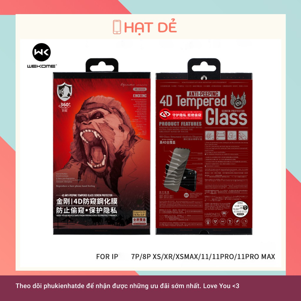Kính Chống Nhìn Trộm King Kong WkDesign cho iphone 7Plus/8Plus/X/XsMax/11ProMax/12ProMax/13/13Pro/13ProMax