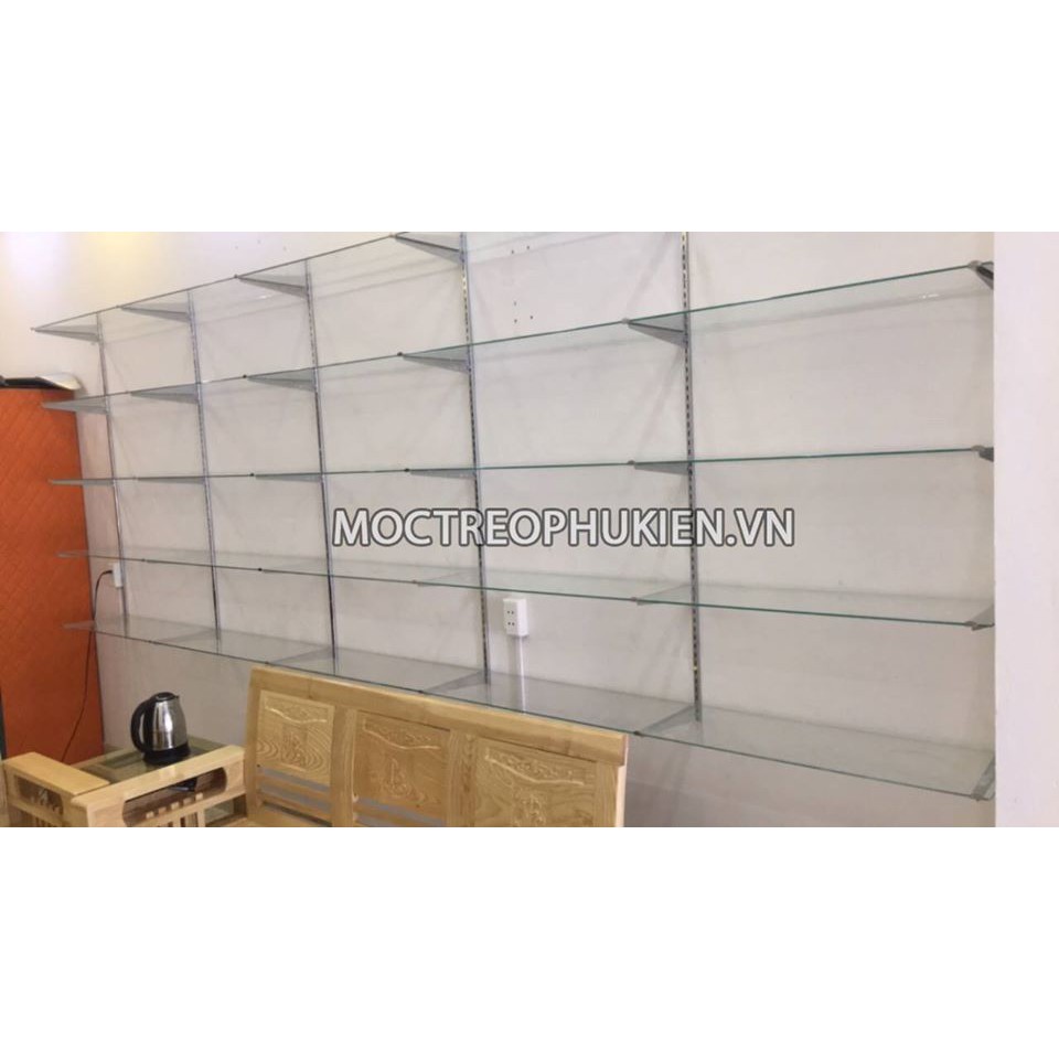 Tay đỡ kệ kính HTD-TD09 kết hợp thanh ray gắn tường A1 được lắp đặt tại Hạ Long - Quảng Ninh để làm kệ trưng bày hàng hóa.