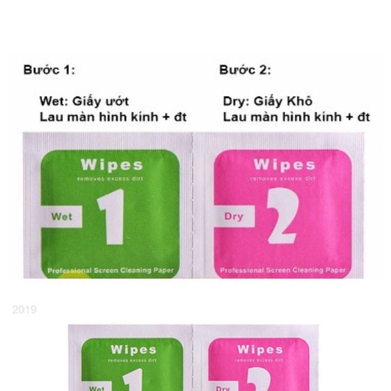 Dùng bộ giấy lau kính cường lực miếng Xanh (wet - ướt) sử dụng trước. Sau đó dùng miếng lau Hồng (dry - khô)