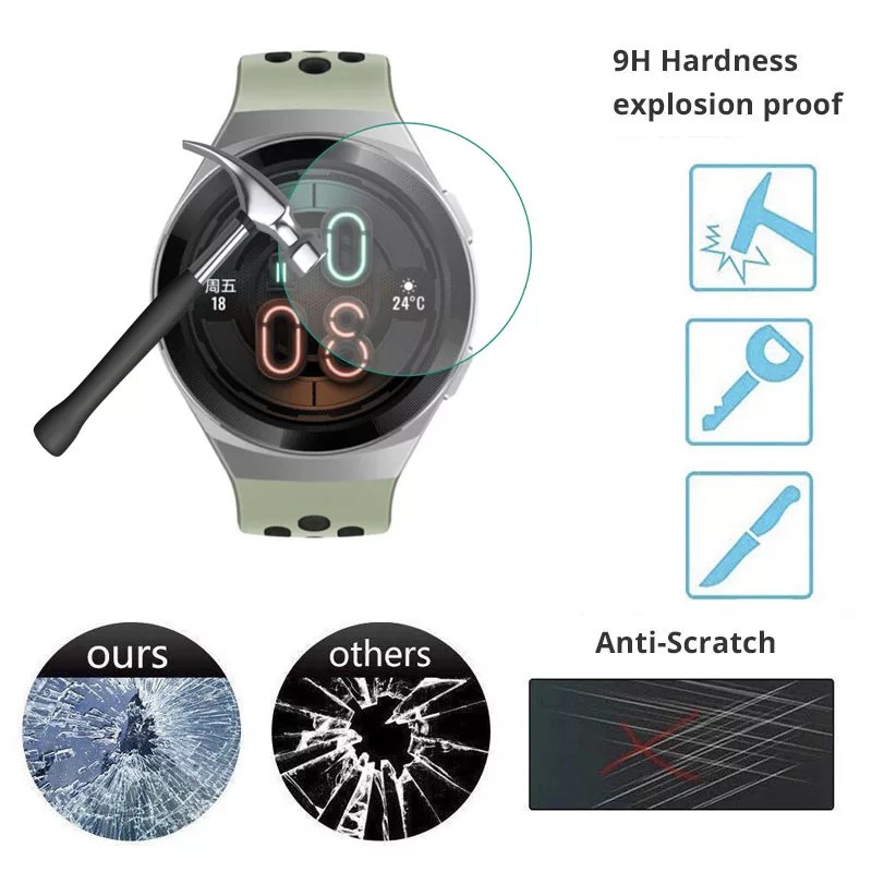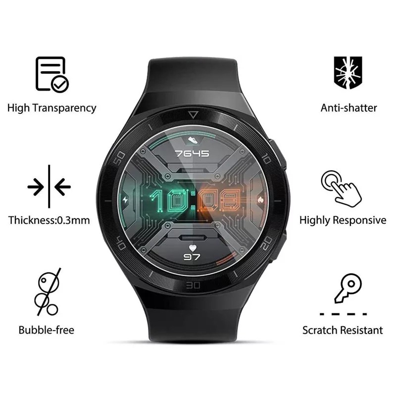 Độ cứng 9H, chống trầy xước bảo vệ màn hình cho Huawei Watch GT 2EĐộ nét cao, làm từ vật liệu kính AGC.