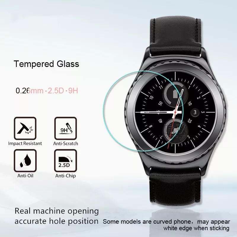 Kính cường lực 2D chống trầy xước bảo vệ cho đồng hồ Samsung Gear S2Độ cứng 9H, chống trầy xước bảo vệ màn hình cho đồng hồ Samsung Gear S2