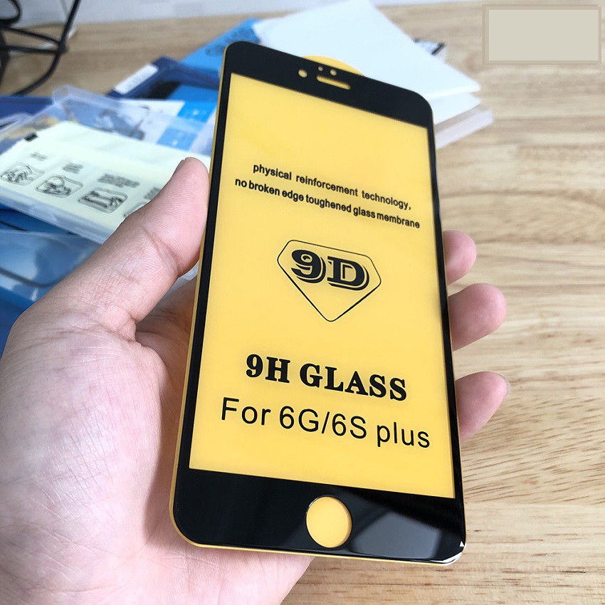 - Kính cường lực 9D cho iPhone 6-7-s-Plus có độ cứng đạt chuẩn 9H bảo vệ an toàn cho màn hình iPhone tốt hơn gấp 5 lần các loại kính cường lực thế hệ cũ. Kính là kính full màn