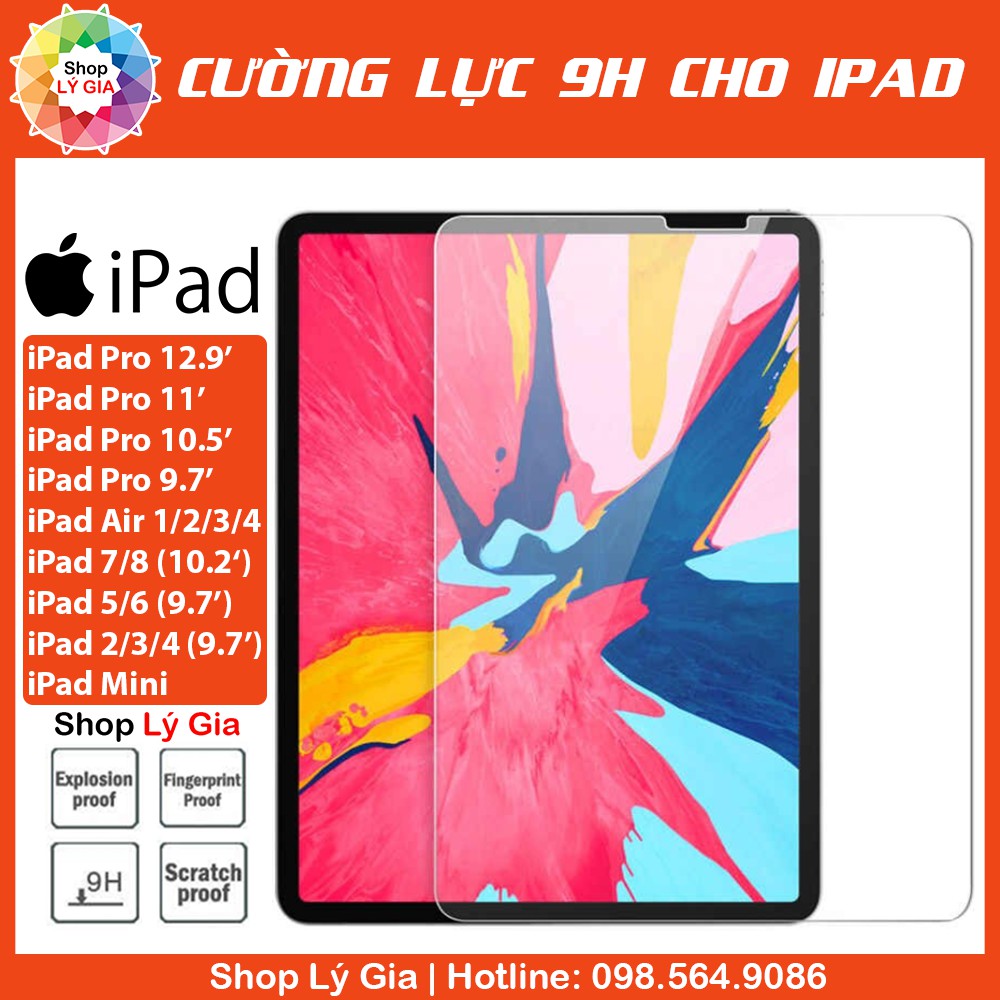 Kính cường lực 9H cho iPad |Full tất cả các dòng ( iPad Pro 11', Air 1/2/3/4, Mini 1/2/3/4/5/6, Gen 2/3/4/5/6/7/8/9)