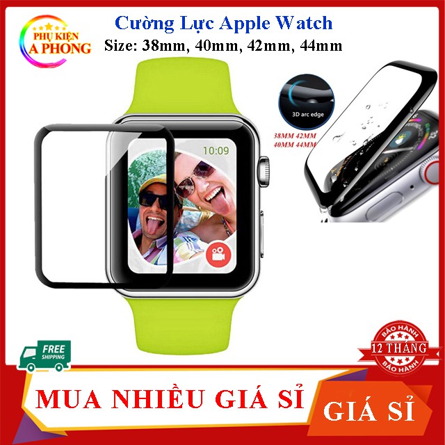 Kính cường lực Apple Watch Full Màn giúp bảo vệ màn hình đồng hồ thông minh với các size 38mm, 40mm, 42mm, 44mmPhụ kiện A phong đảm bảo: