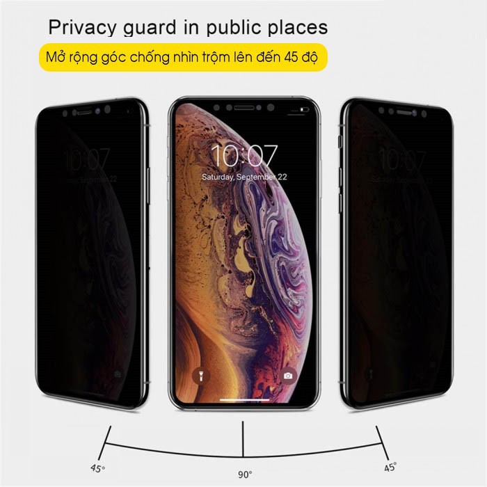 Kính cường lực chống nhìn trộm full màn hình 9D cho các dòng iPhone X / Xs / Xr / Xs Max / 11 / 11 Pro / 11 Pro Max / 7 / 8 / 7Plus / 8 Plus / 12 / 12 Pro / 12 Pro MaxĐặc điểm sản phẩm: