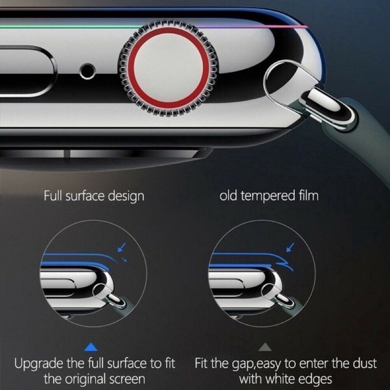 Miếng Dán Cường Lực Apple Wath Cường lực Full 4D bo cong các cạnh viền + Cạnh được vát mỏng 2.5D vuốt trơn mượt không bị cấn