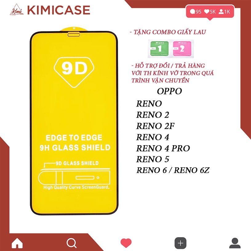 Giới thiệu Kính cường lực full màn 9D dành cho Oppo RENO, RENO 2 / 2F / 4 / 4 PRO / 5 , Reno 6 / 6z