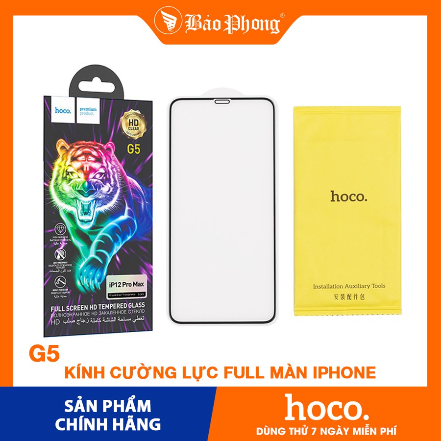 Kính cường lực full màn hình Hoco G5 cho iPhone iP 11 12 PRO MAX IP 7 8 plus X Xs xr 11 12 mini miếng dán chống đập vỡ