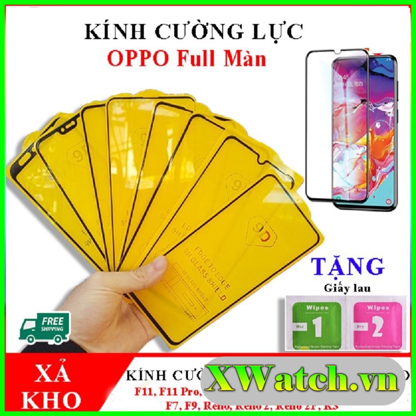 Kính cường lực Full màn Oppo A1k, A3s, A5s, A7, F7, F9, F11, F11 Pro, K3, Reno, Reno2, Reno2F, A5 2020, A9 2020