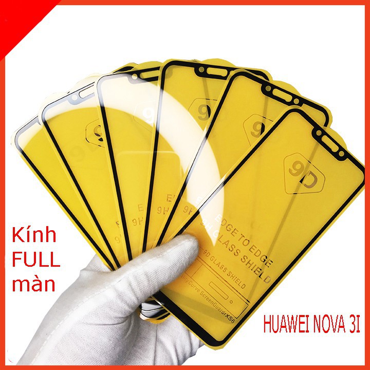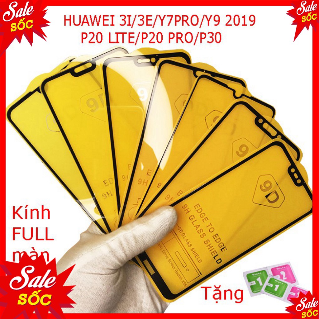 Kính cường lực huawei y7 pro y9 2019 nova 3i nova 2i p30 lite y9 prime nova 5t full màn hình 9D tặng kèm khăn lau [THF]