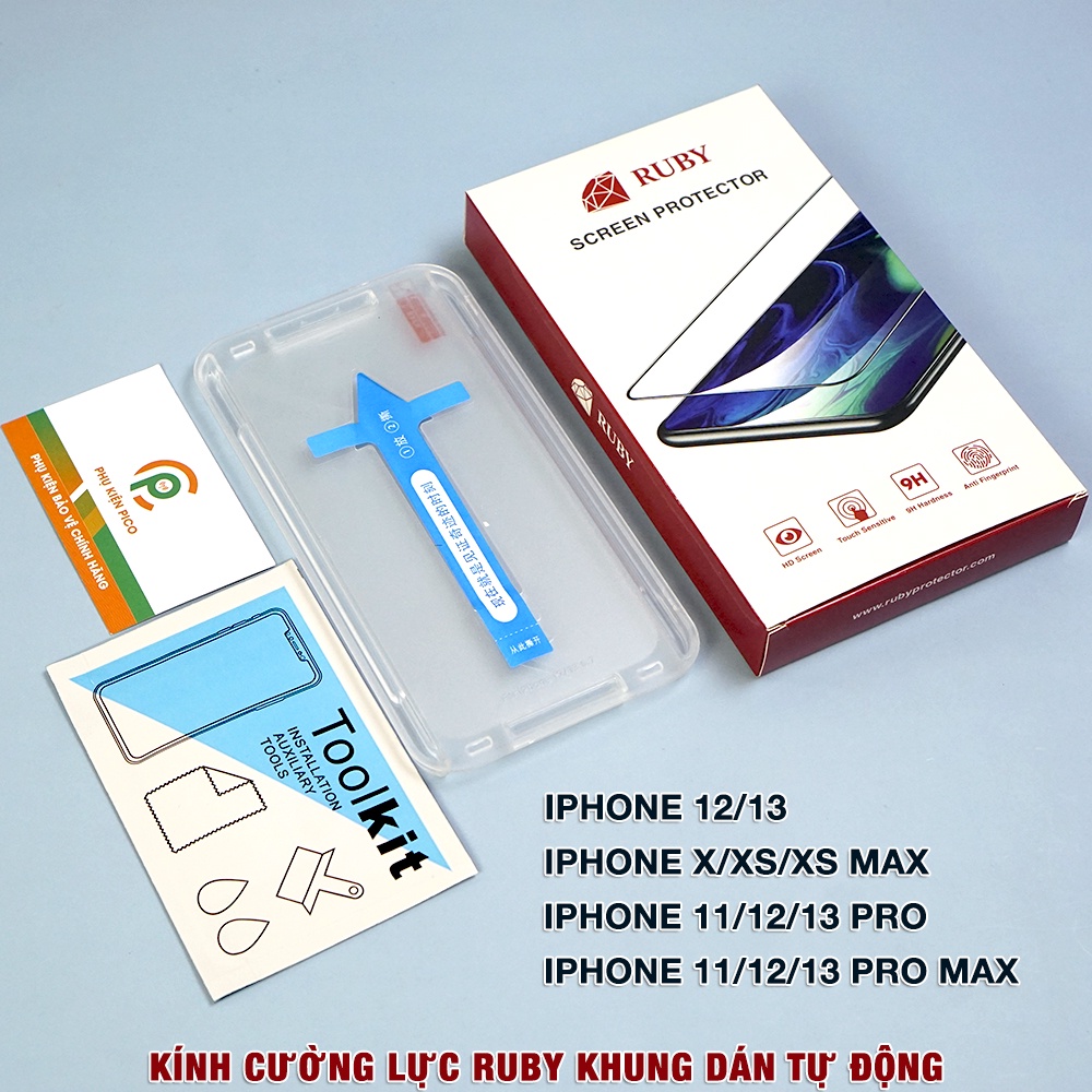 - Kính cường lực Ruby dán dễ dàng trong 5 giây với khung hỗ trợ dán tự động.