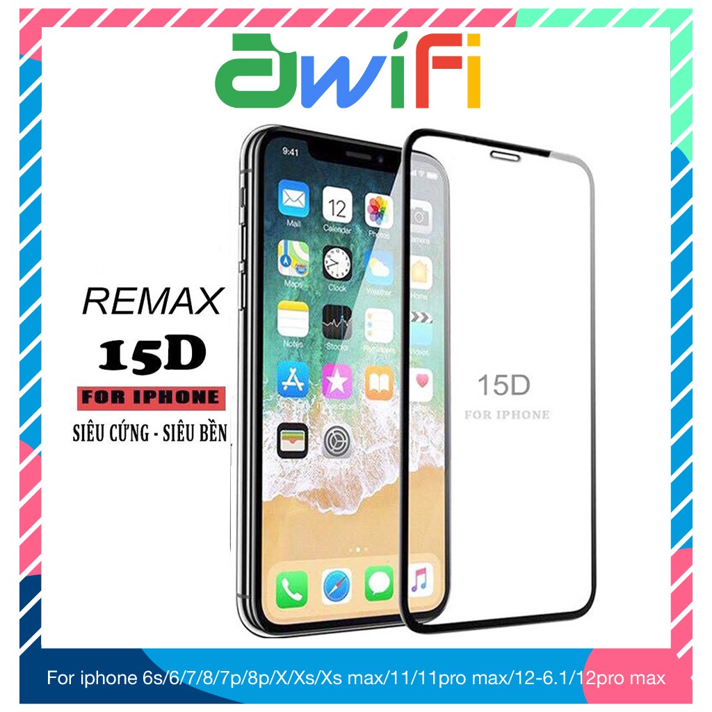 Kính cường lực iphone 15D Remax Full 6/6plus/6s/6splus/7/7plus/8/8plus/x/xr/xs/11/12/13/pro/max/plus/promax-Awifi F1-1