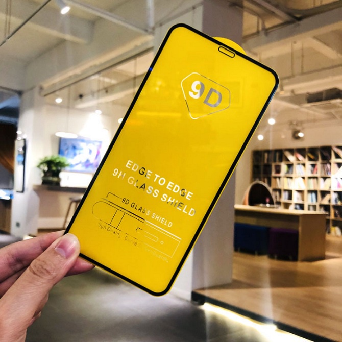 - Kính 9D phủ vừa đủ, không tràn ra tận viền, chất kính thông thường, mượt mà nhưng không bằng 9D.