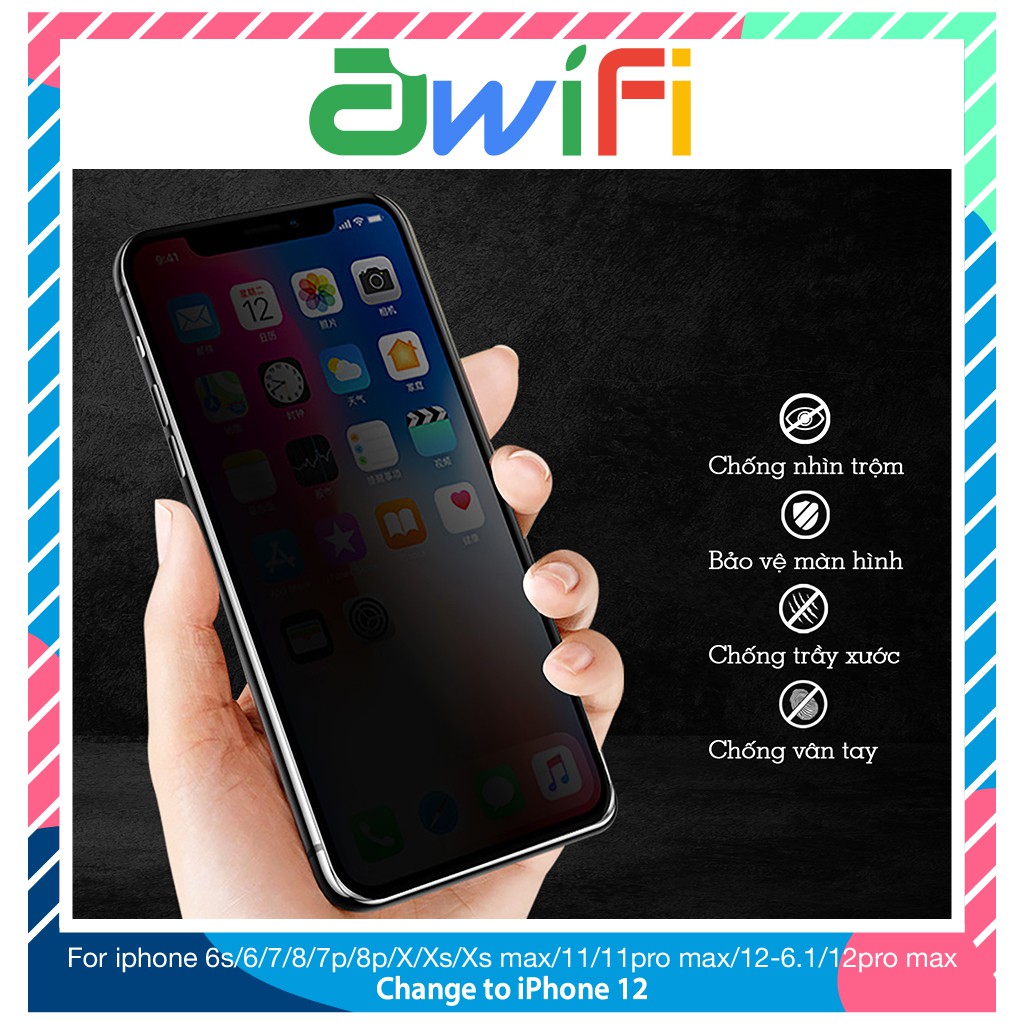 - Mã Sản Phẩm: Kính cường lực iphone chống nhìn trộm 6/6plus/6s/6splus/7/7plus/8/8plus/x/xr/xs/11/12/pro/max/plus/promax - Awifi F2-5