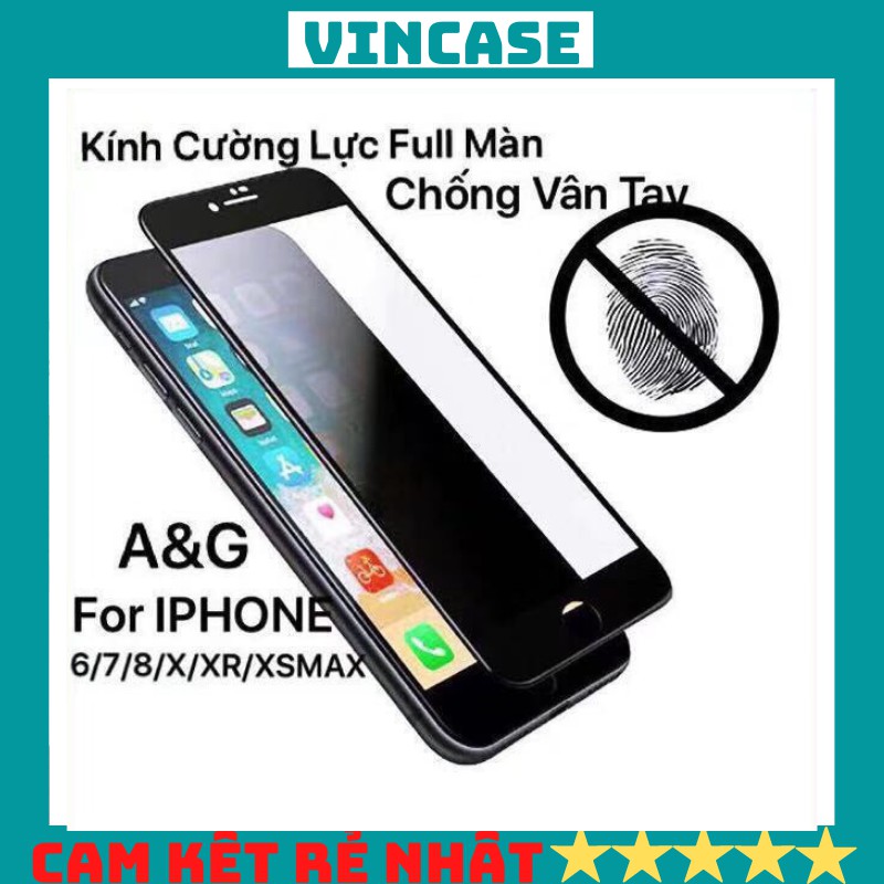 Kính cường lực iphone full màn CHỐNG VÂN TAY 6/6plus/6s/6s plus/6/7/7plus/8/8plus/x/xs/xr/xsmax/11/11pro/11promax-vincas
